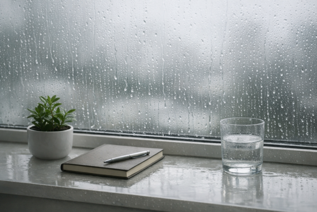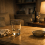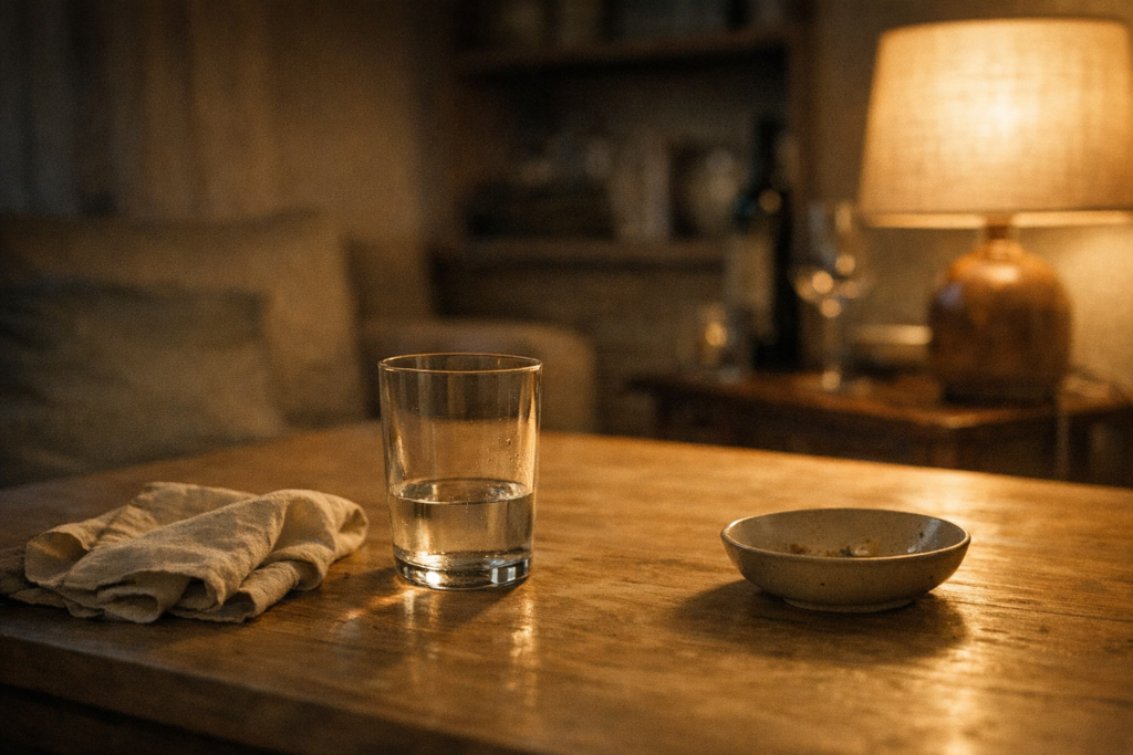 A long-form DewFrame visual essay on photographing the room after people leave: half-finished water, dimmed light, soft objects, and the...